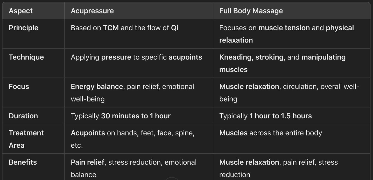Acupressure is based on the principles of Traditional Chinese Medicine (TCM), similar to acupuncture but without the use of needles. Instead, it involves applying pressure to specific points on the body, called acupoints or meridian points, which are connected to the body's energy flow, or Qi (Chi).